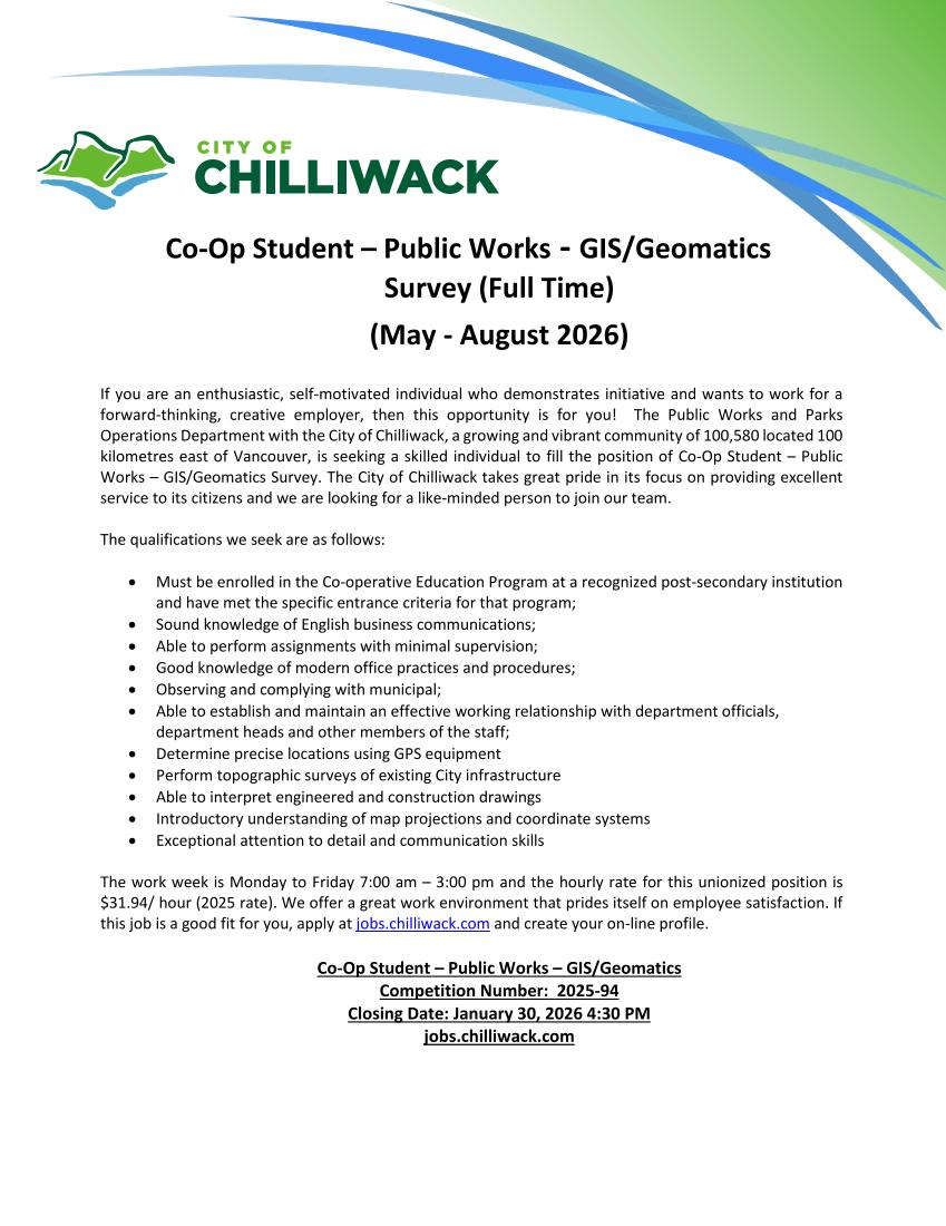 | Title: | Co-op Student - Public Works - GIS/Survey (4 Months) |