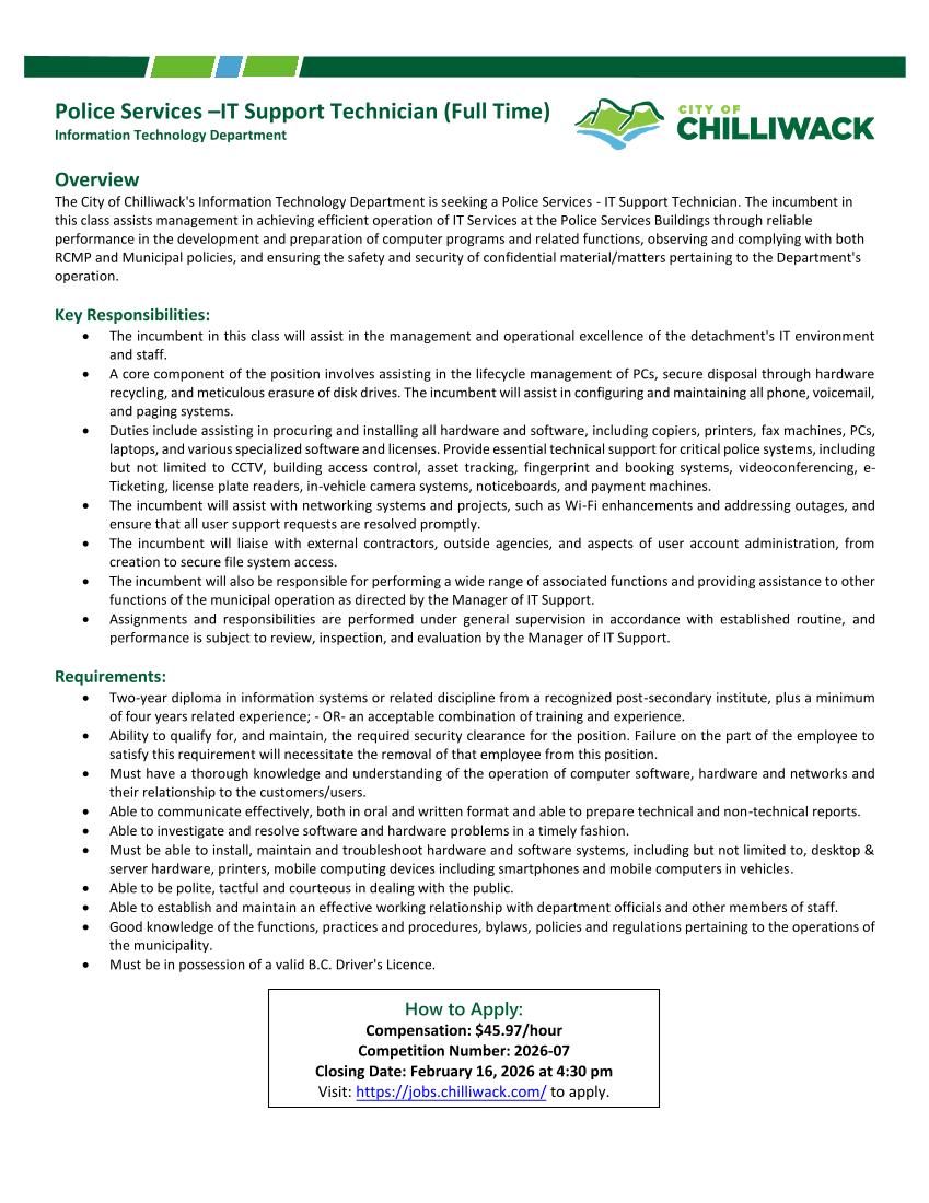 2026-07 - Police Services - IT Support Technician (Full Time) |